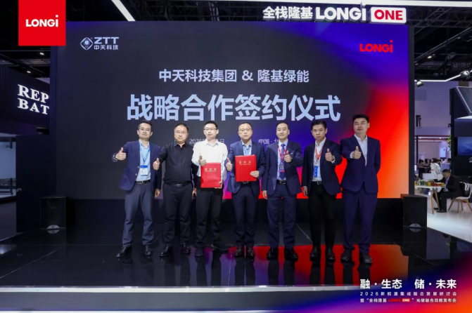 PVTIME – PV giant LONGi has signed a strategic cooperation agreement with Zhongtian Technology Group (ZTT) for a 1GWh energy storage project. This marks a key milestone in the commercial rollout of LONGi’s full-stack PV-storage integration strategy, LONGi ONE, and reflects strong market validation.