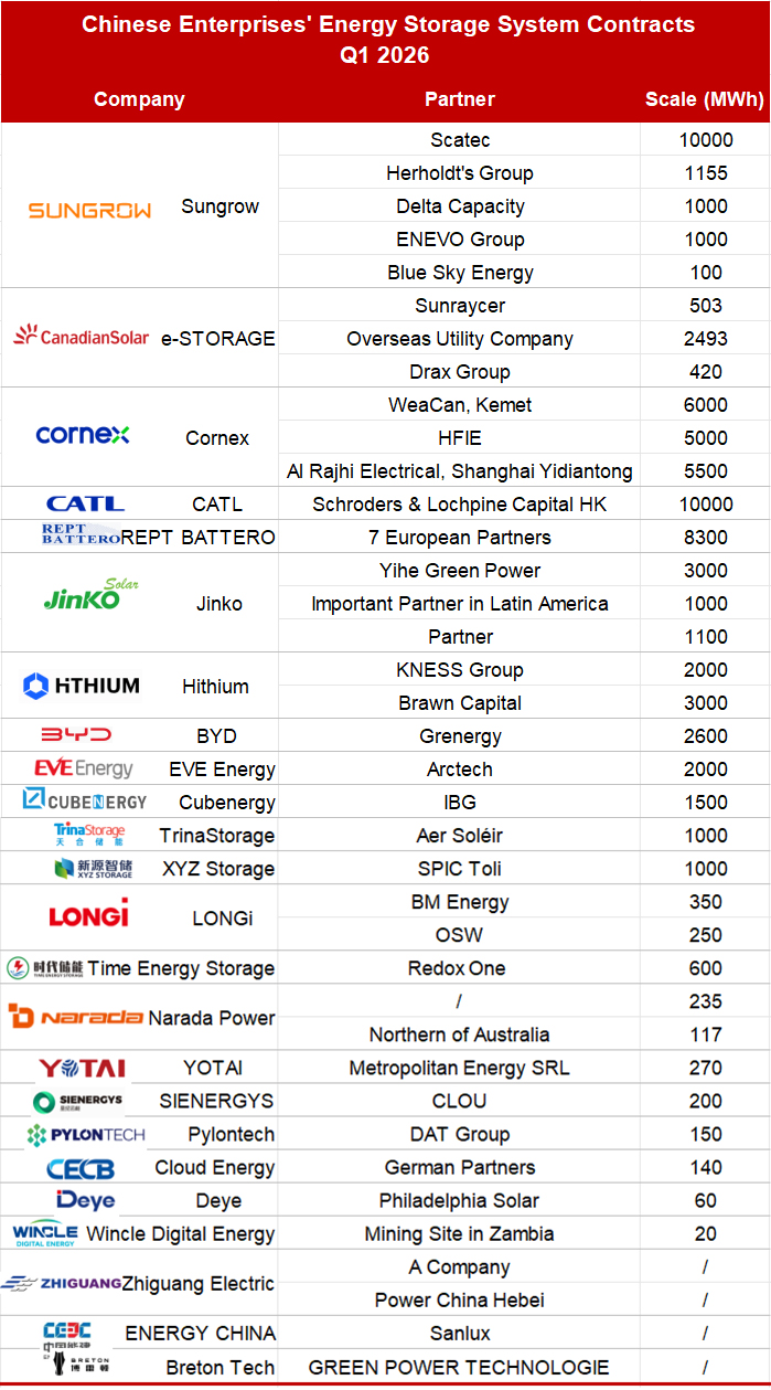 In Q1 2026, Chinese energy storage enterprises recorded global orders totalling 197.6GWh, thereby consolidating their leading international position.