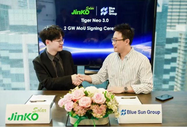 PVTIME – JinkoSolar, a global leader in photovoltaic technology, has signed a memorandum of strategic cooperation with Blue Sun Group, Australia’s leading PV distributor, for the supply of 2GW of Tiger Neo 3.0 high-efficiency modules. The signing, which took place at JinkoSolar’s new Sydney headquarters, builds on three years of successful collaboration, during which time over 1GW of modules have been delivered to Australia. It will further strengthen the strategic alignment between the two companies and drive growth in the nation’s distributed PV market.