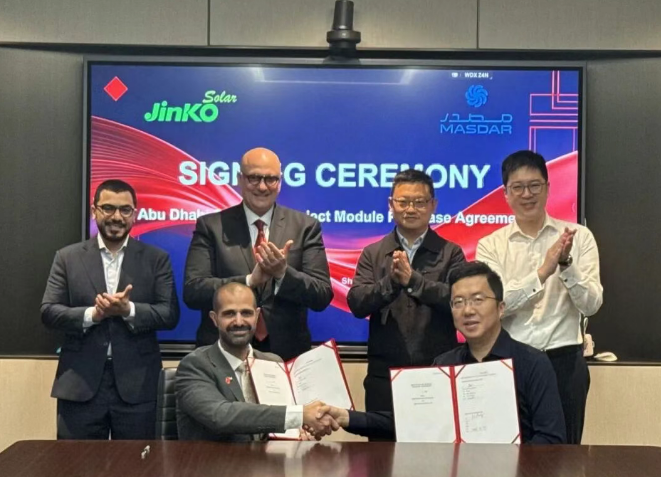 PVTIME – JinkoSolar has confirmed the signing of a 2GW supply agreement for high-efficiency PV modules with Masdar, a leading UAE energy enterprise. The agreement will support Masdar’s iconic Round-the-Clock (RTC) integrated solar-storage flagship project in Abu Dhabi.