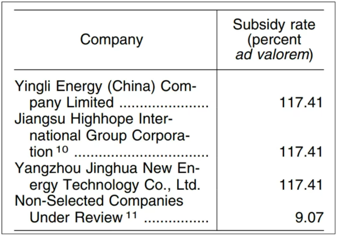 PVTIME – On 27 January, the US Department of Commerce’s International Trade Administration issued a final ruling claiming that certain Chinese crystalline silicon photovoltaic cell enterprises had received subsidies in 2022. The administration has therefore decided to continue imposing countervailing duties, with the highest rate reaching 117.41%.